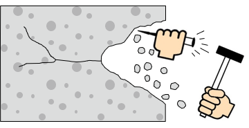 ひび割れ(クラック)の形状・幅・長さ・深さを確認し、工程・順序を決定します。