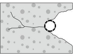 漏水を伴うひび割れ等を、漏水箇所に沿って線状に水みちを閉塞せずに排水溝に導く工法です。漏水量が比較的多く、漏水が打継目やひび割れ等に沿って線状に発生している場合で、主に内空断面に余裕のない場合に特に有効です。