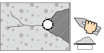 止水セメントや断面修復材で溝を充填・埋戻します。表面はコテで仕上げます。