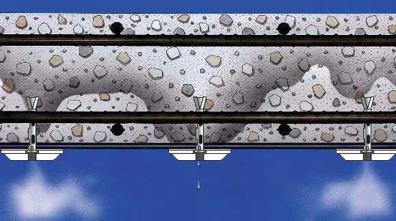 高架橋の床版下面補強と水抜き