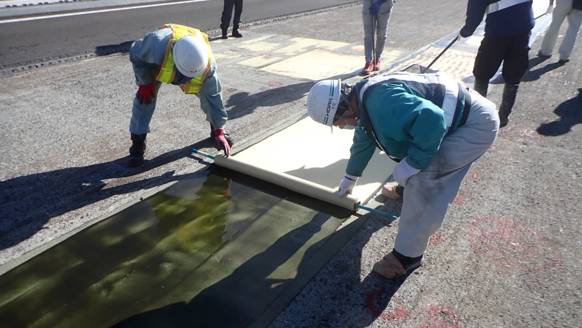 繊維シート貼付工(床版上面部)