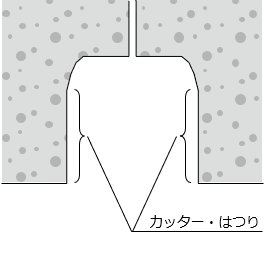 チッパー等を用いて、カッターを入れた溝を斫り取ります。高圧洗浄機等を用いて、溝を水洗いします。